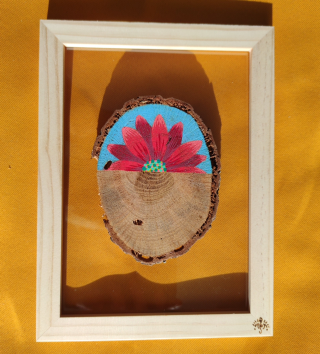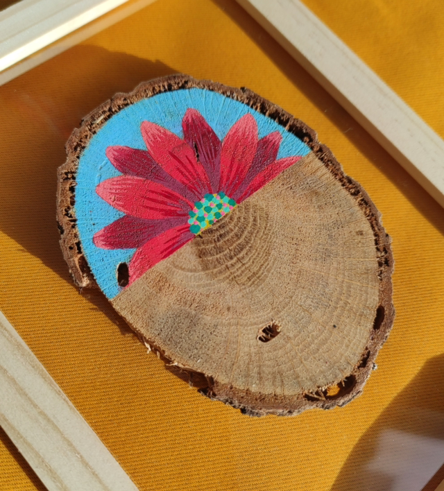• Rondelle de chêne peinte à la main (acrylique) et vernie